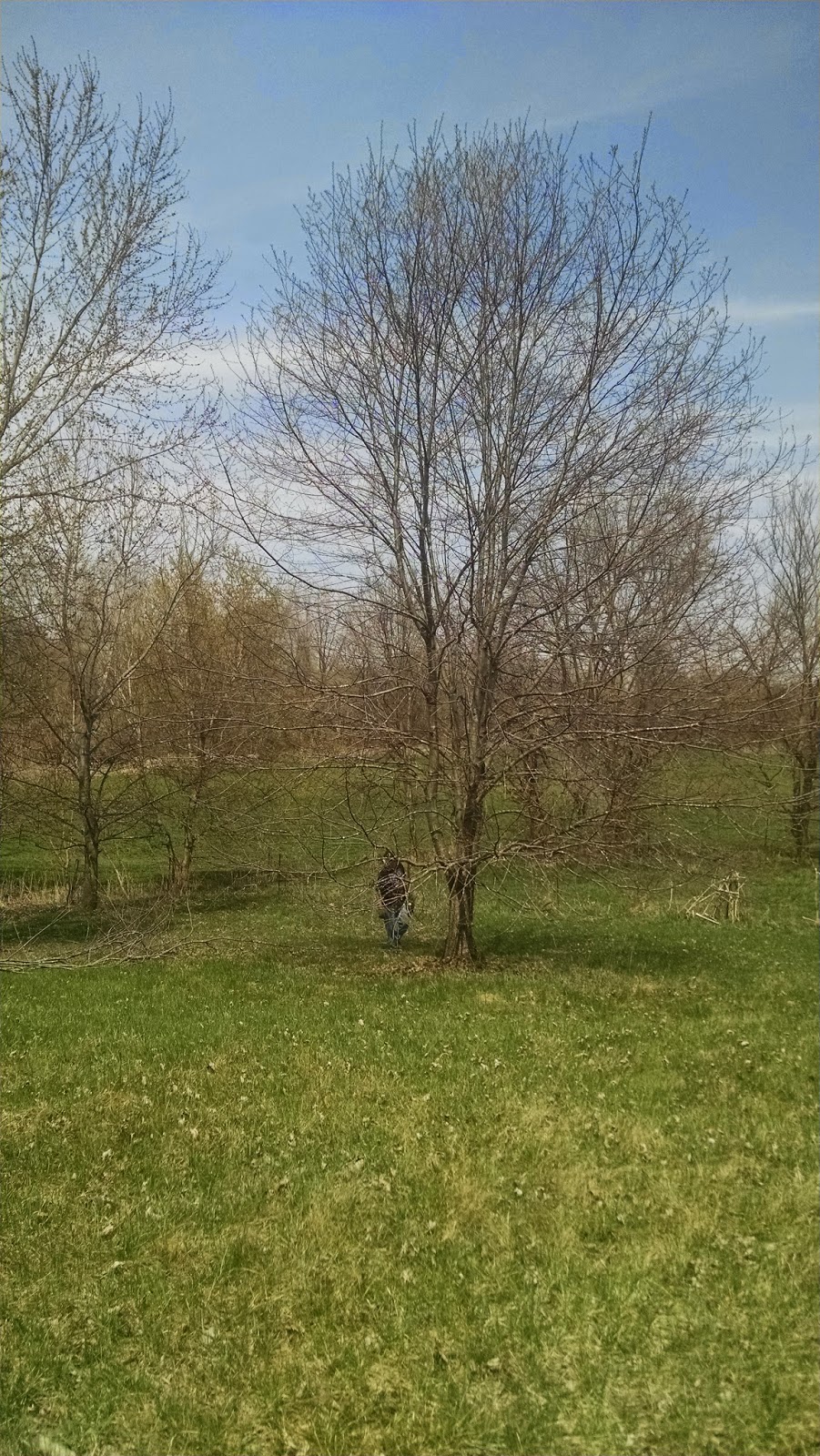 I've mentioned before that this year's big homestead projects are fruit trees, berry bushes, and getting the boatload of unfinished projects from previous years done. We'd picked out a place for our fruit trees some time ago, with one little fly in the ointment: There was a non-fruit tree growing right where our new orchard was going to go.
